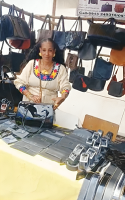 During an unexpected 10-day leave to Addis Ababa, Masho assisted her brothers at a trade fair for their leather business. Inspired, she returned to Mekelle. In 2014, she established “Look Leather Products,” pouring her savings and more family loans into the business. She quickly expanded her equipment and hired six employees, working with a total capital of 1.5 million birr. She produced bags, belts, and wallets, gaining a solid customer base.