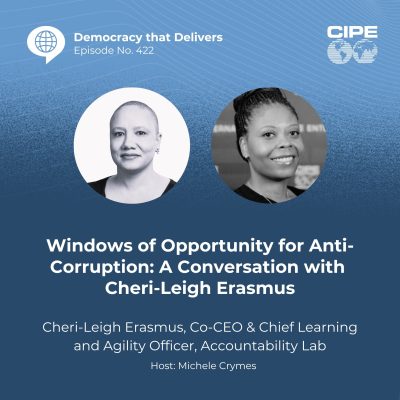 To give our listeners some context, at CIPE’s Anti-Corruption and Governance Program we work on a range of projects focused on transparency and accountability. One area we focus on is what we call “windows of opportunity.” These are moments of democratic shift — when countries experience political transitions, government crises, or reform momentum that creates openings for civil society and reformers to move democracy forward.